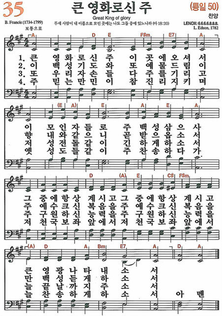 새 찬송가 35장 - 큰 영화로신 주 (악보, 가사, PPT 다운로드)