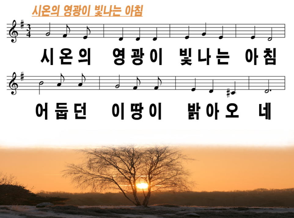 G코드 찬양 악보 / 시온의 영광이 빛나는 아침 / 악보 / 가사 / PPT 다운로드
