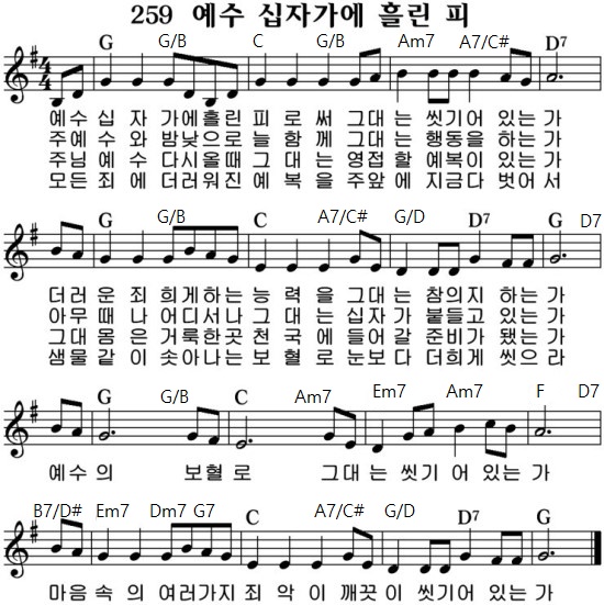 G코드 찬양 악보 / 예수 십자가에 흘린 피 / 악보 / 가사 / PPT 다운로드