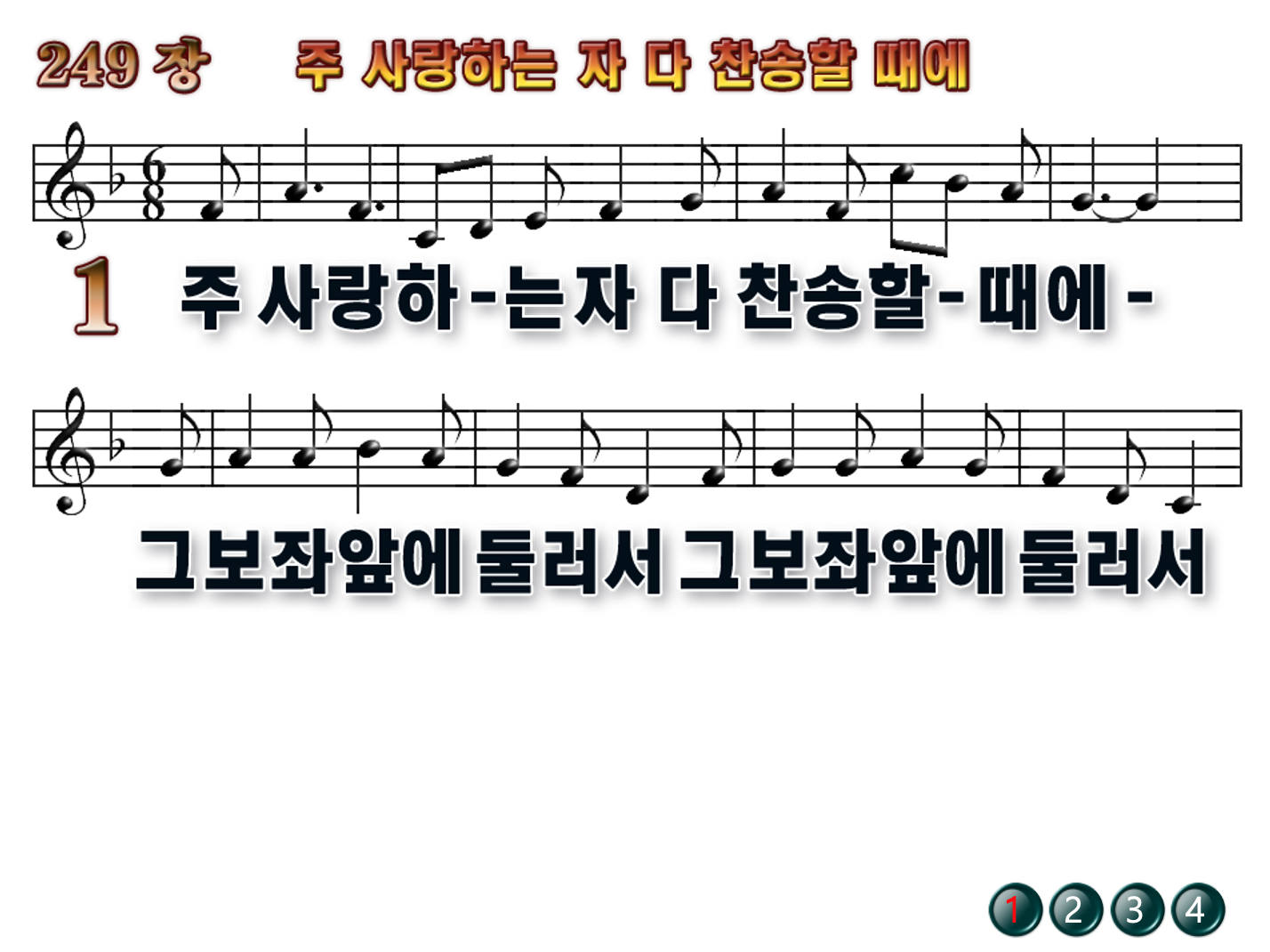 새 찬송가 249장 - 주 사랑하는 자 다 찬송할 때에(악보, 가사, PPT 다운로드)