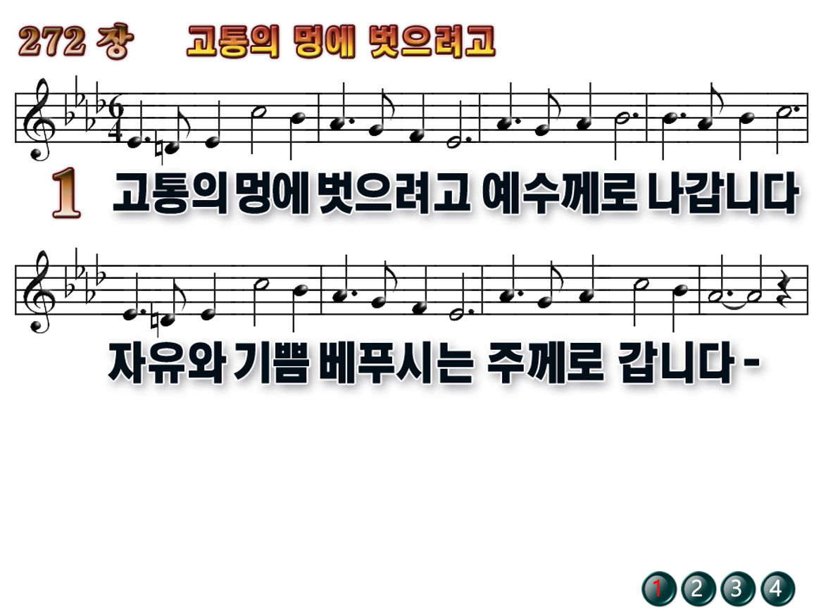 새 찬송가 272장 - 고통의 멍에 벗으려고(악보, 가사, PPT, 무배경 다운로드)