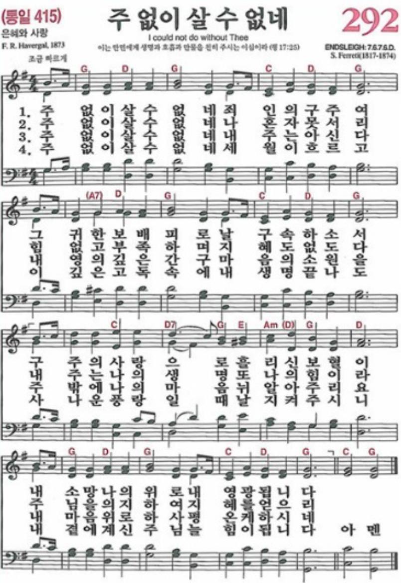 찬송가 / 찬송가 악보 / 찬송가 ppt / 무배경 찬송가 ppt / 새 찬송가 / 찬송가 콘티 / 통일찬송가 / 새 찬송가 292장 / 주 없이 살 수 없네