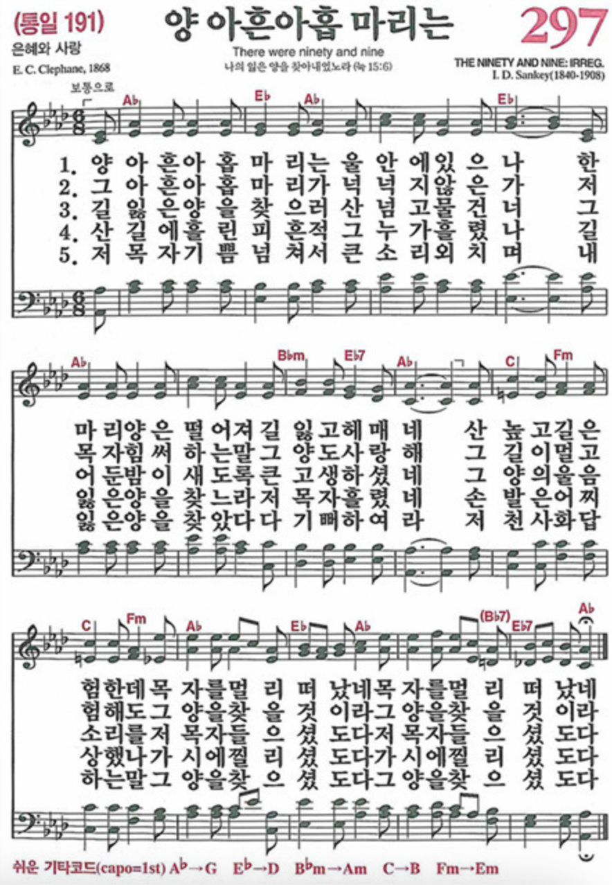 찬송가 / 찬송가 악보 / 찬송가 ppt / 무배경 찬송가 ppt / 새 찬송가 / 찬송가 콘티 / 통일찬송가 / 새 찬송가 297장 / 양 아흔아홉 마리는