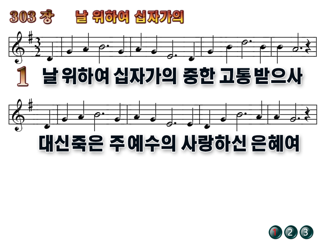 찬송가 / 찬송가 악보 / 찬송가 ppt / 무배경 찬송가 ppt / 새 찬송가 / 찬송가 콘티 / 통일찬송가 / 새 찬송가 303장 / 날 위하여 십자가의