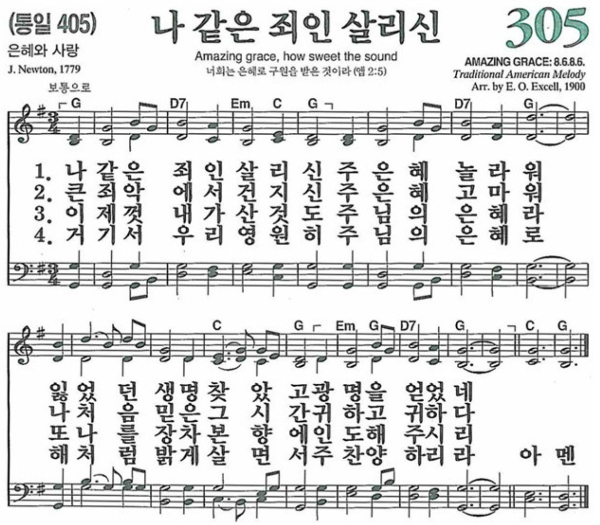 새 찬송가 305장 <나 같은 죄인 살리신>