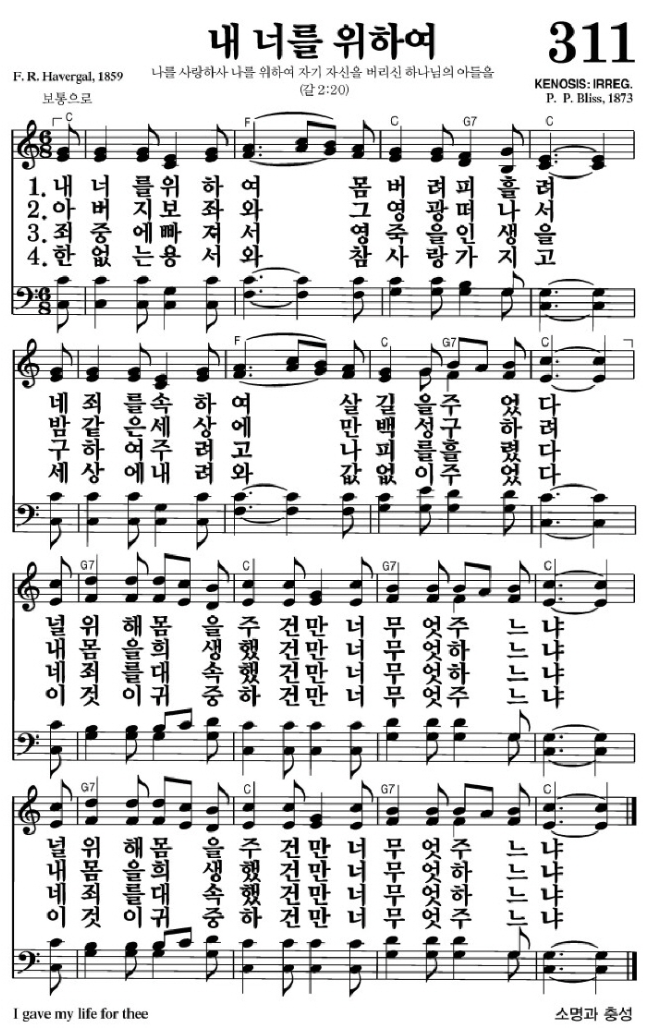 찬송가 / 찬송가 악보 / 찬송가 ppt / 무배경 찬송가 ppt / 새 찬송가 / 찬송가 콘티 / 통일찬송가 / 내 너를 위하여 / 새 찬송가 311장