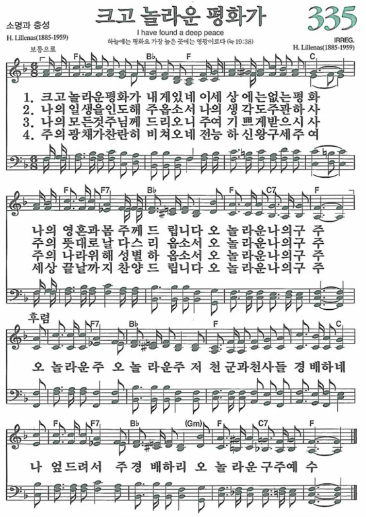 새 찬송가 335장 <크고 놀라운 평화가>