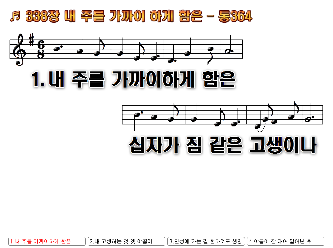 찬송가 / 찬송가 악보 / 찬송가 ppt / 무배경 찬송가 ppt / 새 찬송가 / 찬송가 콘티 / 통일찬송가 / 새 찬송가 338장 / 내 주를 가까이 하게 함은