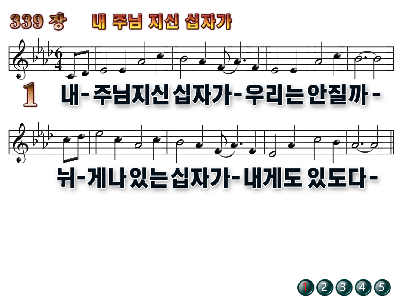 찬송가 / 찬송가 악보 / 찬송가 ppt / 무배경 찬송가 ppt / 새 찬송가 / 찬송가 콘티 / 통일찬송가 / 새 찬송가 339장 / 내 주님 지신 십자가