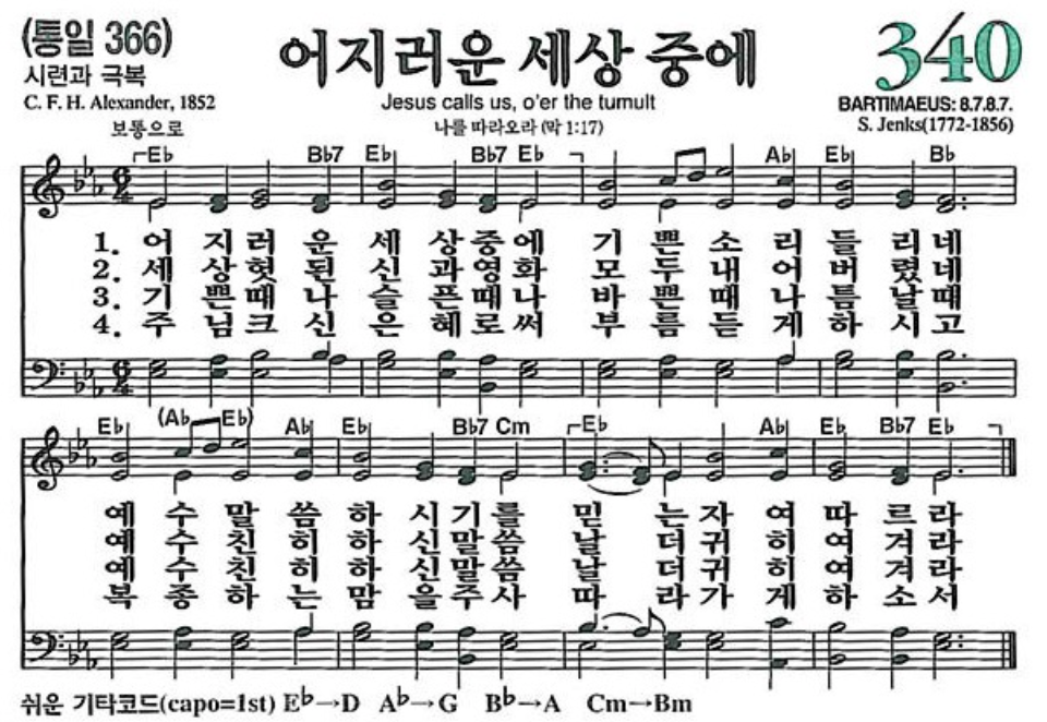 찬송가 / 찬송가 악보 / 찬송가 ppt / 무배경 찬송가 ppt / 새 찬송가 / 찬송가 콘티 / 통일찬송가 / 새찬송가 340장 / 어지러운 세상 중에