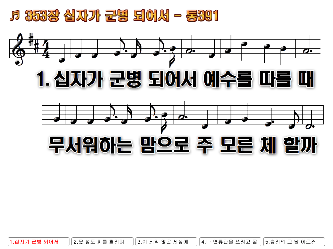 찬송가 / 찬송가 악보 / 찬송가 ppt / 무배경 찬송가 ppt / 새 찬송가 / 찬송가 콘티 / 통일찬송가 / 새 찬송가 353장 / 십자가 군병되어서