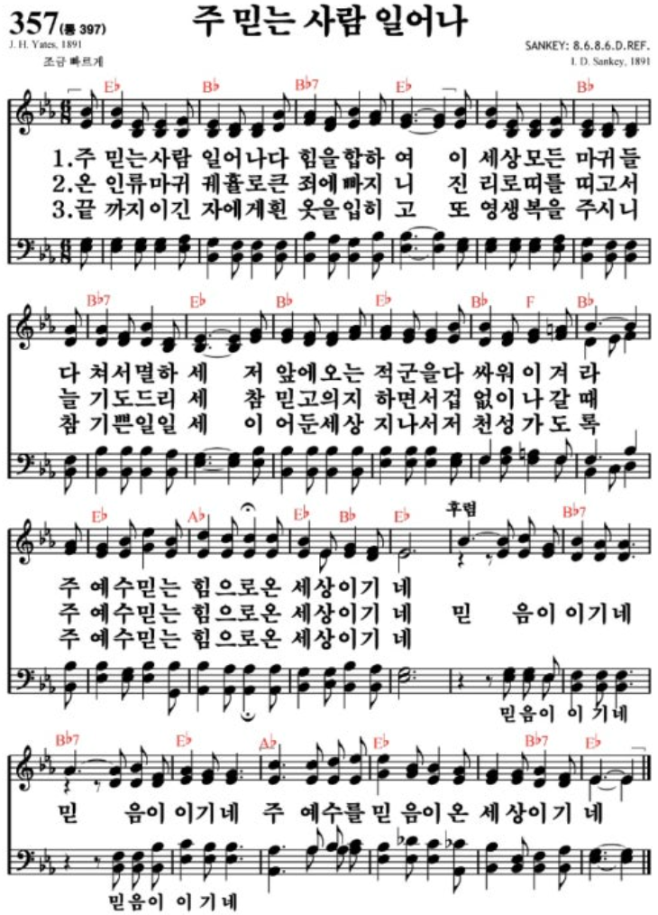 찬송가 / 찬송가 악보 / 찬송가 ppt / 무배경 찬송가 ppt / 새 찬송가 / 찬송가 콘티 / 통일찬송가 / 새찬송가 357장 / 주 믿는 사람 일어나
