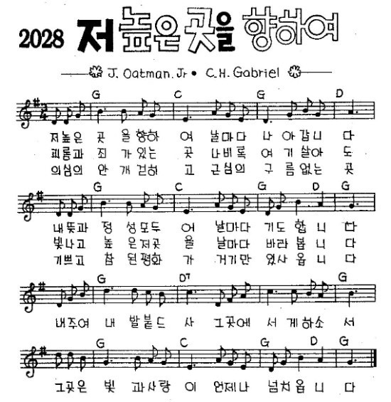 G코드 찬양 악보 / 저 높은 곳을 향하여 / 악보 / 가사 / PPT 다운로드