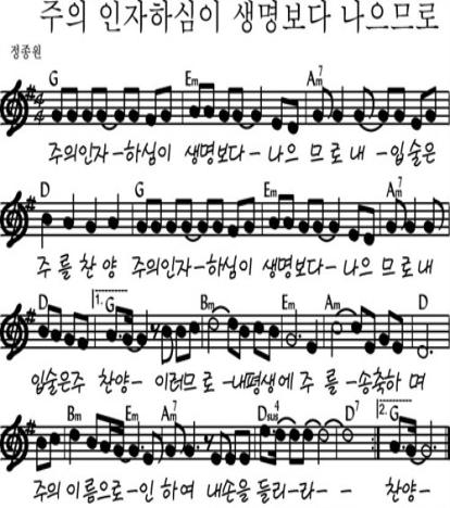 G코드 찬양 악보 / 주의 인자하심이 생명보다 나으므로 / 악보 / 가사 / PPT 다운로드