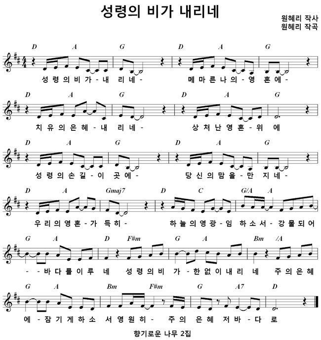 D코드 찬양 악보 / 성령의 비가 내리네 / 악보 / 가사 / PPT 다운로드