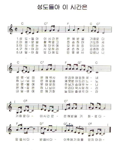 C코드 찬양 악보 / 성도들아 이 시간은 / 악보 / 가사 / PPT 다운로드