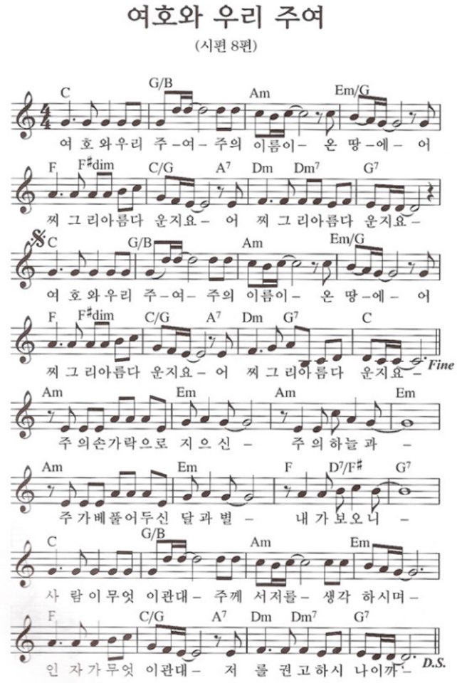 C코드 찬양 악보 / 여호와 우리 주여 / 악보 / 가사 / PPT 다운로드