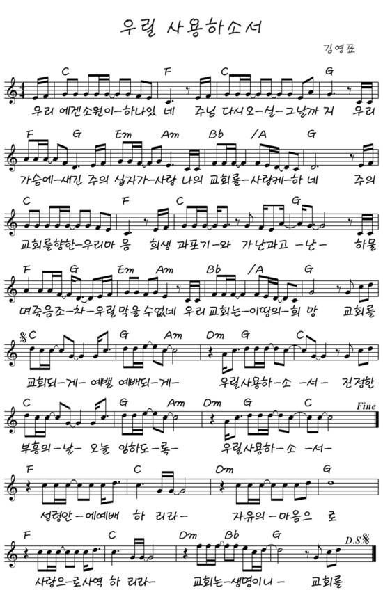 C코드 찬양 악보 / 우릴 사용하소서 / 악보 / 가사 / PPT 다운로드