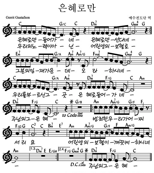 C코드 찬양 악보 / 은혜로만 들어가네 / 악보 / 가사 / PPT 다운로드