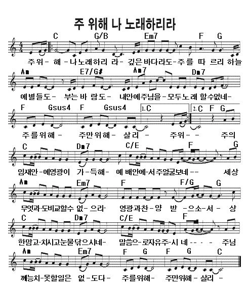 C코드 찬양 악보 / 주 위해 나 노래하리라 / 악보 / 가사 / PPT 다운로드