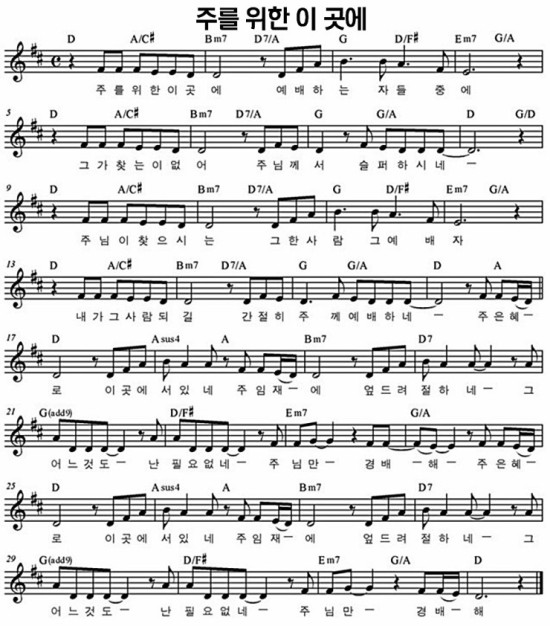 D코드 찬양 악보 / 주를 위한 이곳에 / 악보 / 가사 / PPT 다운로드