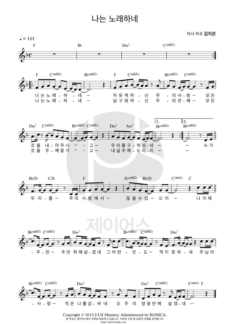 F코드 찬양 악보 / 나는 노래하네 / 악보 / 가사 / PPT 다운로드