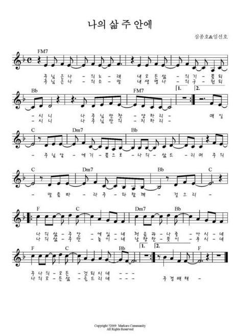 F코드 찬양 악보 / 나의 삶 주 안에 / 주님은 나의 노래 / 악보 / 가사 / PPT 다운로드
