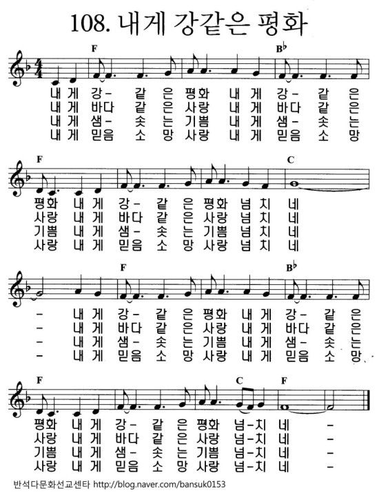 F코드 찬양 악보 / 내게 강 같은 평화 / 악보 / 가사 / PPT 다운로드
