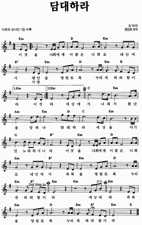 F코드 찬양 악보 / 담대하라 / 악보 / 가사 / PPT 다운로드