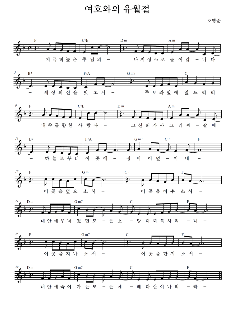 | F코드 찬양 악보 / 여호와 주님 / 악보 / 가사 / PPT 다운로드 (0) | 2021.07.10 |
