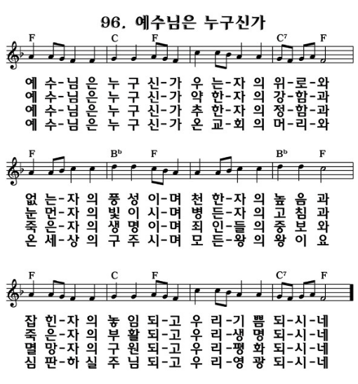 F코드 찬양 악보 / 예수님은 누구신가 / 악보 / 가사 / PPT 다운로드