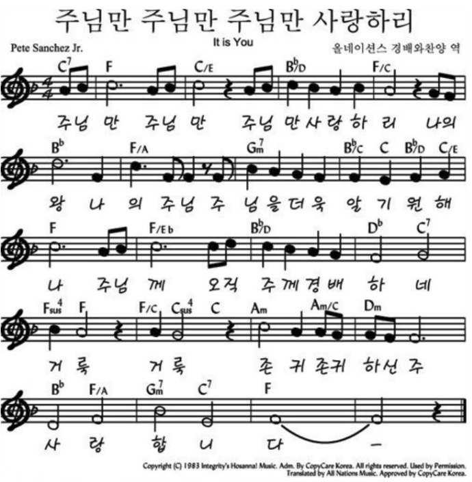 F코드 찬양 악보 / 주님만 주님만 주님만 사랑하리 / 악보 / 가사 / PPT 다운로드