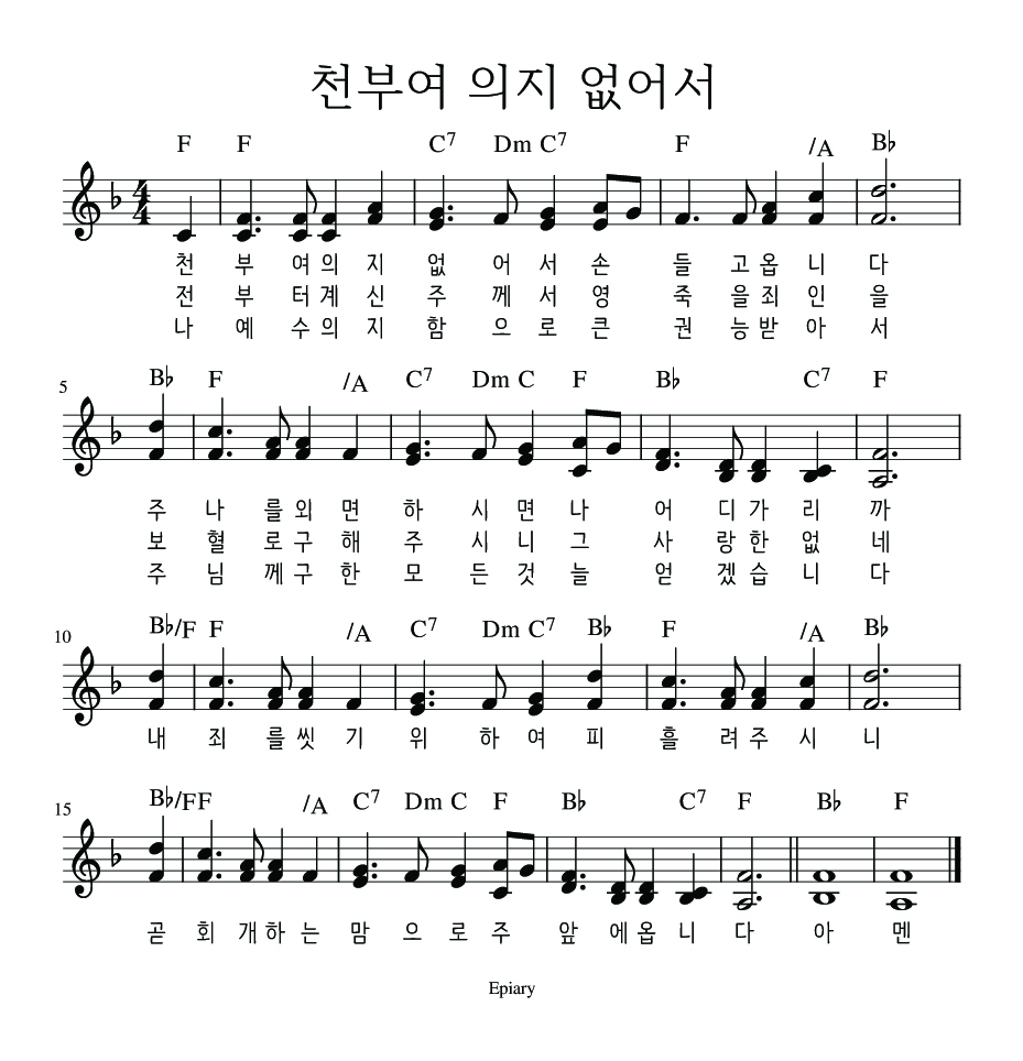 F코드 찬양 악보 / 천부여 의지 없어서 / 악보 / 가사 / PPT 다운로드