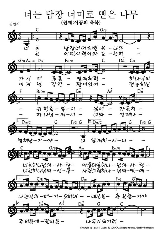 추수감사절 찬양 / 너는 담장 너머로(야곱의 축복) / 악보 / 가사 / PPT 다운로드